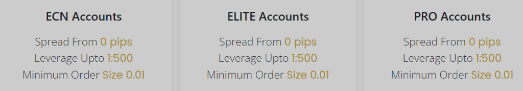 Abin Capital offers variety of trading account for clients like ECN, Elite and PRO. According to the account descriptions, the broker leverage is capped 1:500 and spread below 1.7 pips.
