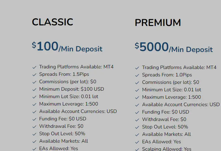 What is more, the broker offers different account packages such as CLASSIC AND PREMIUM.