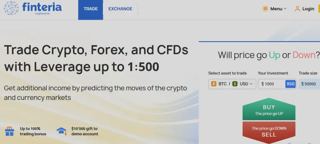 As for Finteria leverage, it can get up to 1:500. Frankly, we say don’t consider doing that with an unregulated forex broker like this one because you stand the chance of losing your money.