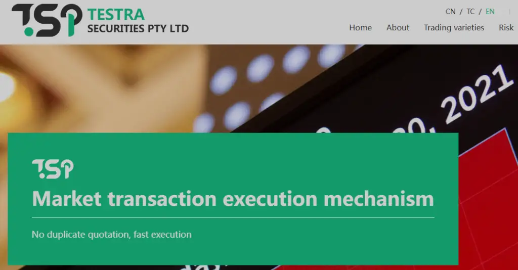 First of, Testra Securities doesn’t mention anything about its purported regulation or at least the financial authority that is supposed to be overseeing its activities.