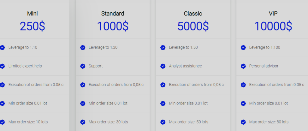 What is more, there are different account types offered namely, Mini, Standard, Classic and VIP.