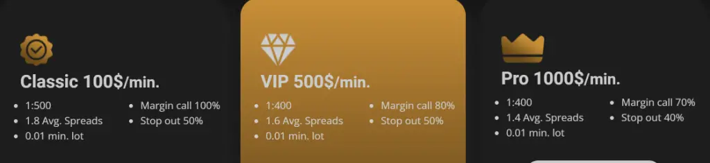 This broker offers variety of account for traders. The broker provides a leverage capped 1:500.