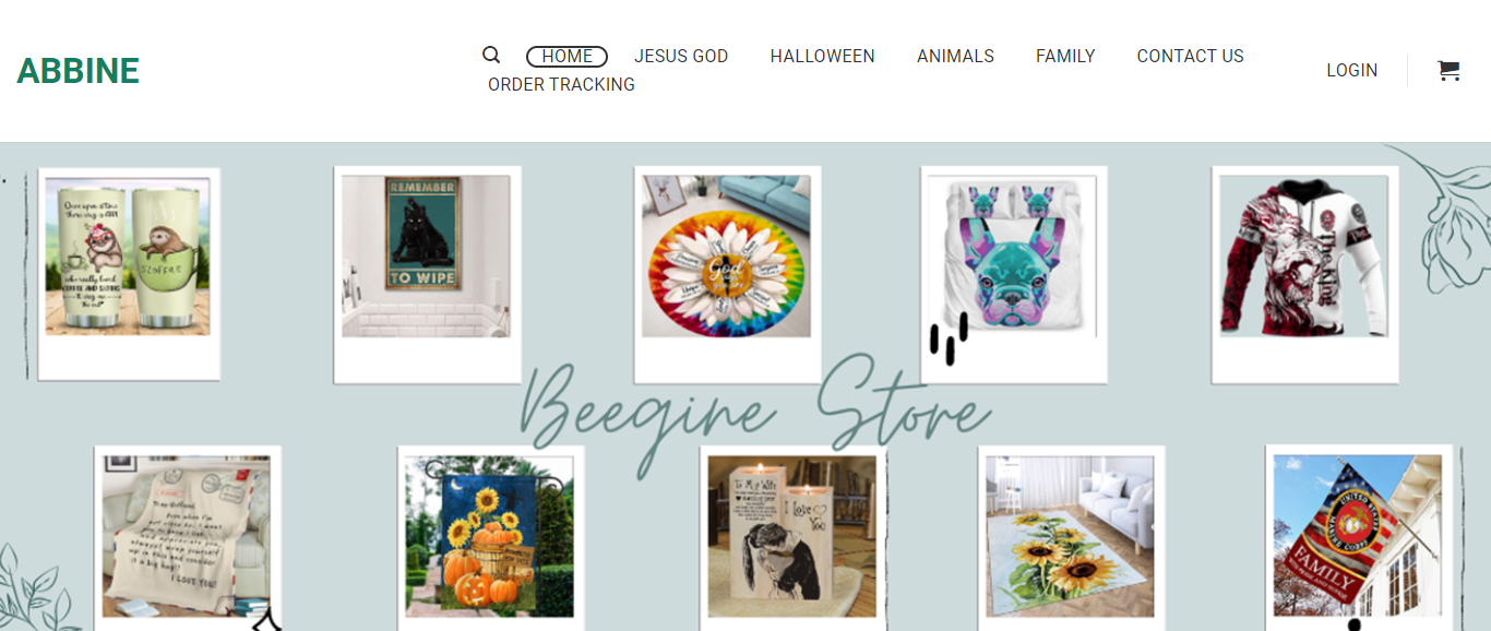 Abbine.shop has stolen most of its contents, product images from various online stores.