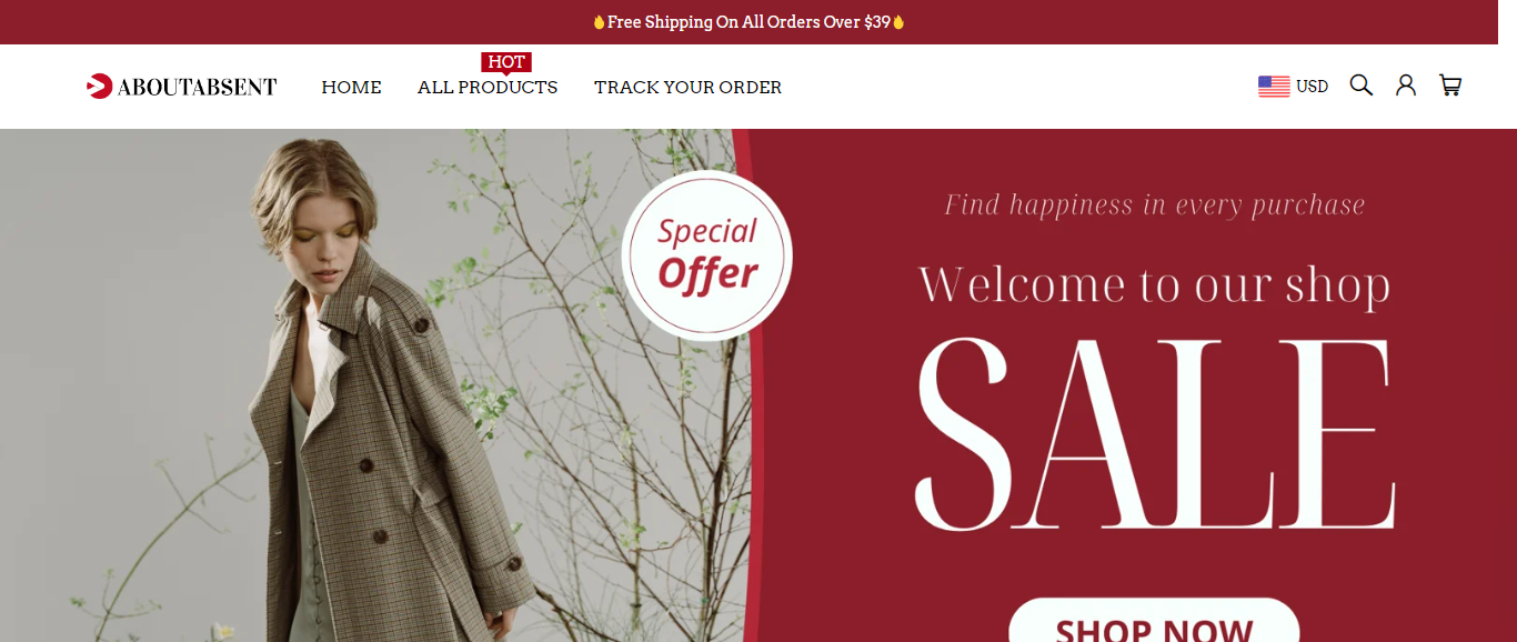 Aboutabsent has so many red flags and these are reasons why you should not bother shopping from the website. Some of the Red flags include: