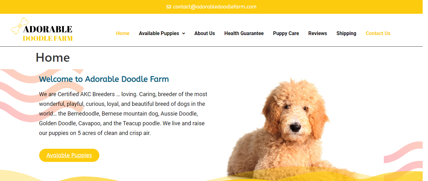 Adorable Doodle Farm located at Adorabledoodlefarm.com is an online store that is selling different types of puppies such as Ausie Doodle, Golden Doodle, Teacup Poodle, etc. And these products are sold at a suspicious discount rate.