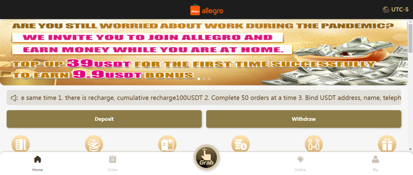However this Allegropf is a scam, they claim that one can earn $ 100-150 a day for 50 tasks completed and be promoted to vip2. But after depositing the initial deposit and completing tasks, the members find it hard to withdraw their money. This screams FAKE.