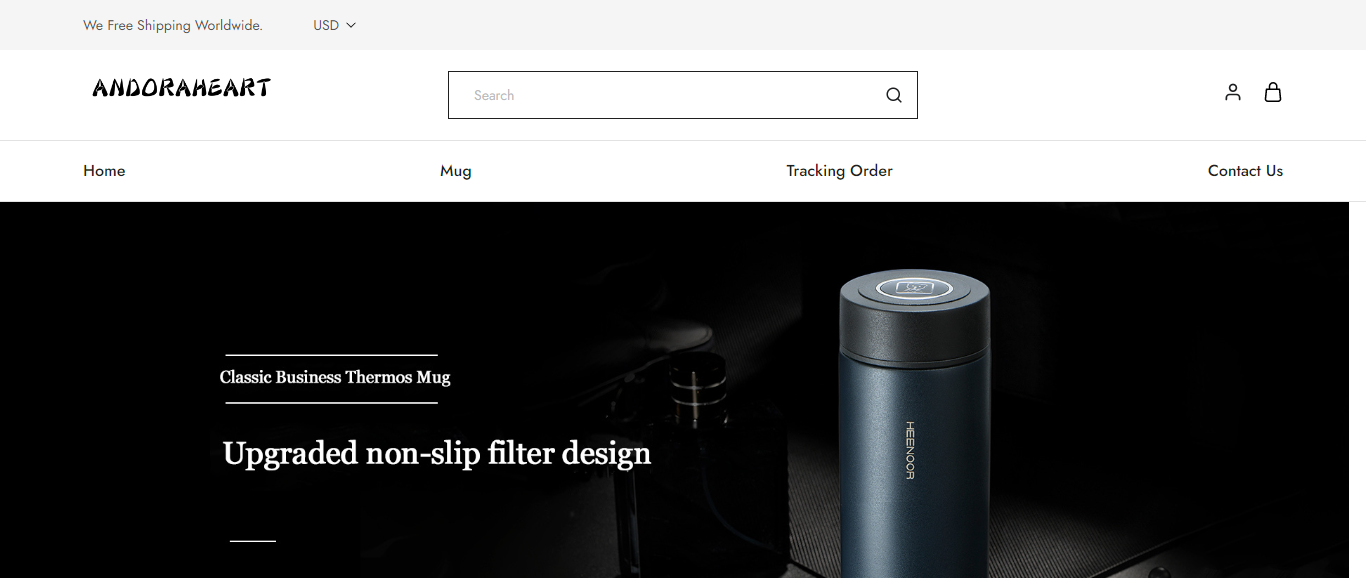 Andoraheart located at Andoraheart.com is an online store that is selling various products such as classic business thermos mugs, vacuum insulation cup, etc. And these products are sold at a suspicious discount rate.