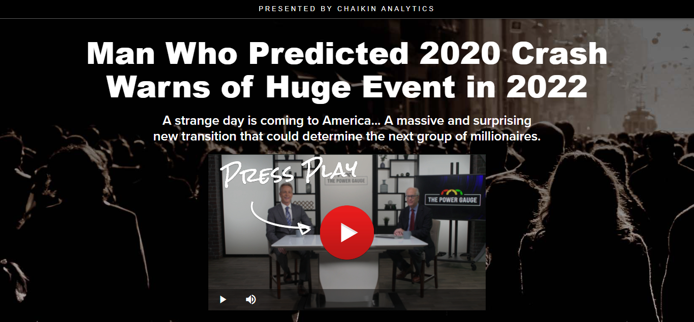 According to the website, The last time he issued a public warning like this, the market went on to see its biggest one-day drop in history. Chaikin also claims that the market’s next move will take EVERYBODY by surprise. Including Wall Street.