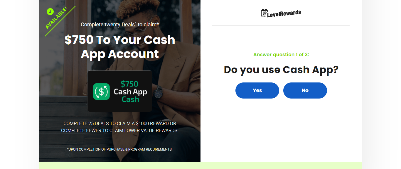 On the official website users are asked to complete twenty deals in order to claim $750 to their cashapp account or complete 25 deals to claim $1000. According to the website, You can typically complete all of the required sponsored Deals within 5-7 days (some may take up to 60 days to complete). Once you complete the required number of Deals, you must complete the Reward claims process, which requires ID verification. It typically takes our customer service team 5-7 days to verify and deliver your Reward.