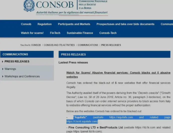 The situation always gets worsen for unlicensed brokers when some institutions issue a warning against them. Another financial authority from The Italian local watchdog – CONSOB has blacklisted the broker for public to see.