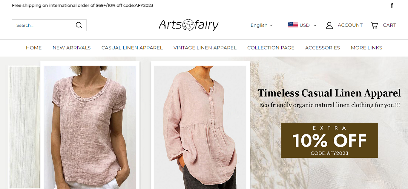 Artsfairy located at Artsfairy.com is an online store that is selling various products such as casual linen apparels, maxi dress, pants, etc. And these products are sold at a suspicious discount rate.