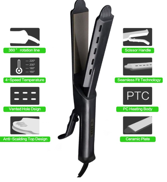 - 4 easily adjustable temperature settings (one-button adjustment): 320° F, 356° F, 392° F, and 428° F.Suitable for all hair types!
