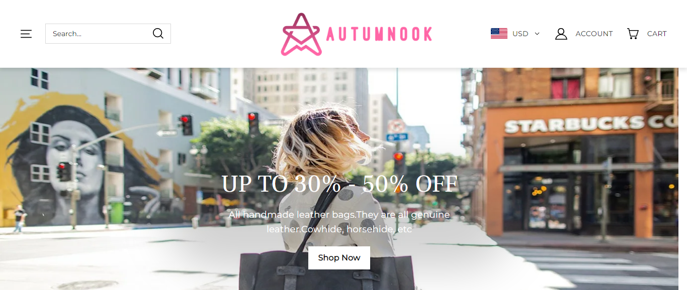 Autumnook located at Autumnook.com is an online store that is selling various types of leather bag, , etc And these products are sold at a suspicious discount rate.