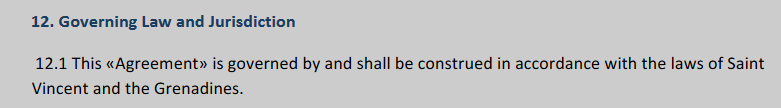 Furthermore, the document states that the applicable jurisdiction is in fact the Saint Vincent and the Grenadines (SVG).