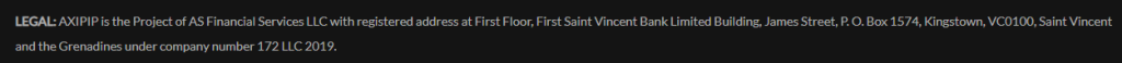 First of, Axipip.com claims registered address in Saint Vincent and the Grenadines (SVG).