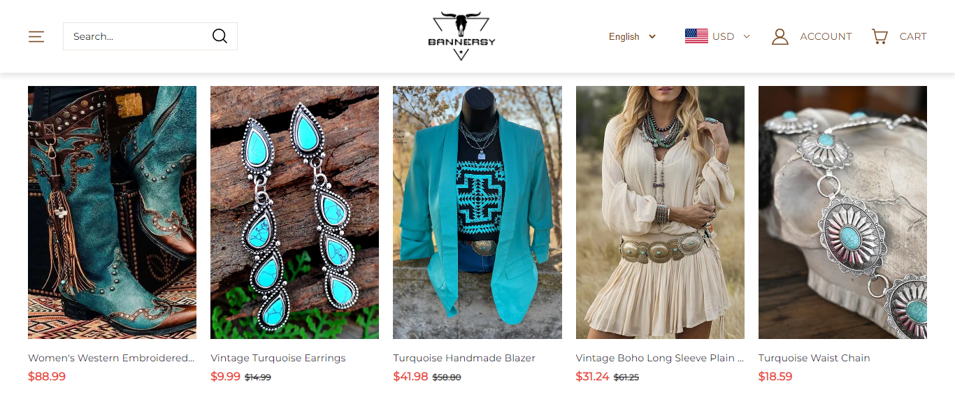 Bannersy located at Bannersy.com is an online store that is selling various products such as leather work jacket, embroidered jeans, earrings, vintage gown, etc. And these products are sold at a suspicious discount rate.