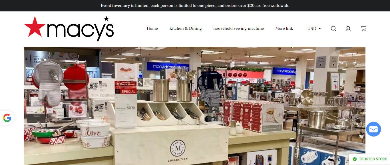 Bbnhtd located at Bbnhtd.shop is an online store that is impersonating the Macy brand. It claims to be selling various types of cookware and dining set, etc. And these products are sold at a suspicious discount rate.