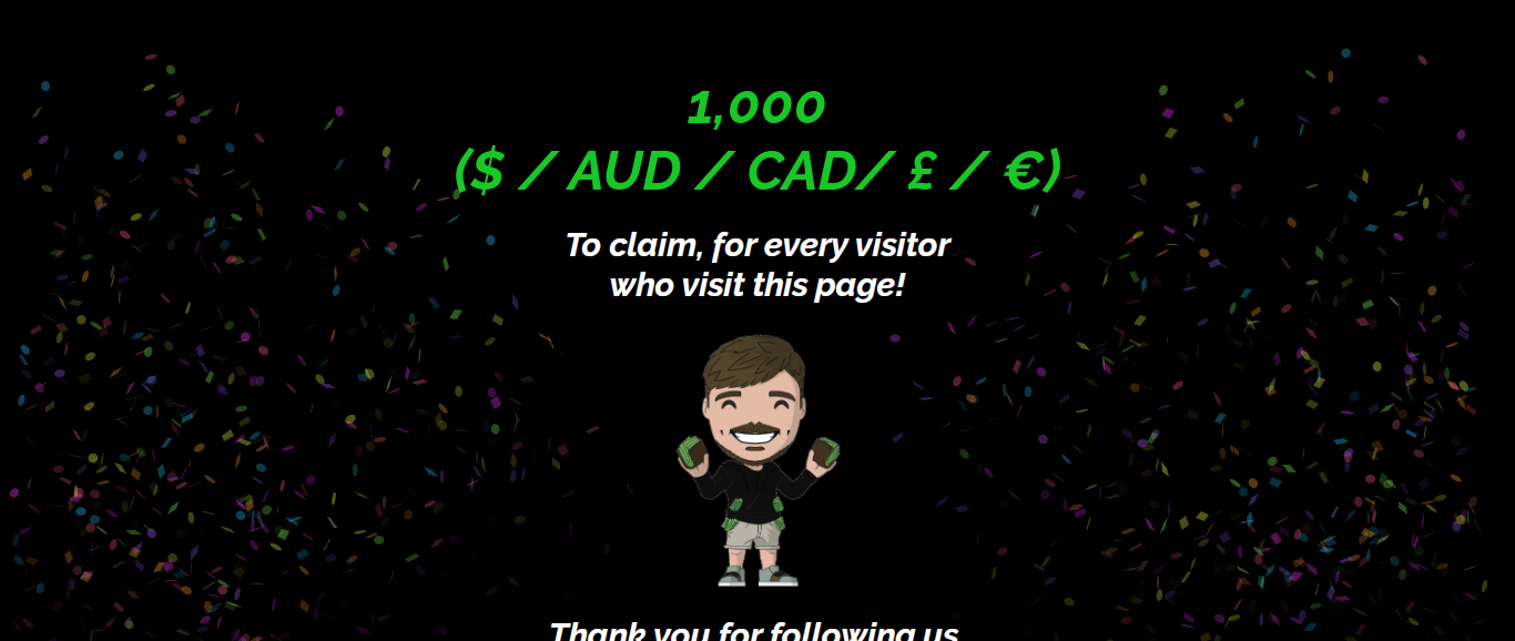 The Beast-pin.com is claiming to be the Mr Beast page and promising to give out $1000 to every subscriber who visits the page.