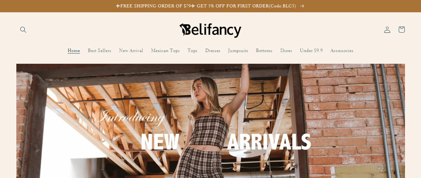 Belifancy located at Belifancy.com is an online store that is selling various female fashion and clothing such as tops, dresses, jumpsuits, shoes, bottoms, accessories, etc.