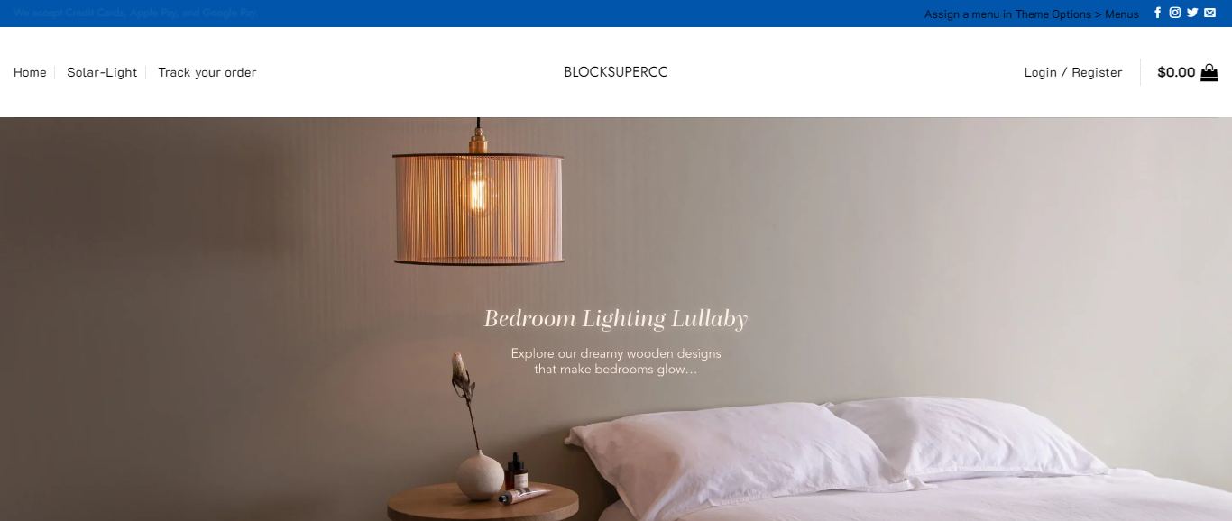 Blocksupercc located at Blocksupercc.com is an online store that is selling various products such as string LED Light, sunflower outdoor garden lights, etc. And these products are sold at a suspicious discount rate.