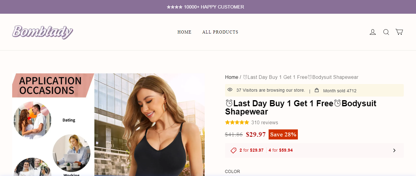 Bomblady located at Bomblady.com is an online store that is selling various types of shapewears, bodysuits, etc And these products are sold at a suspicious discount rate.