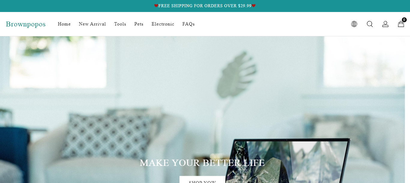 brownpopos.com has stolen most of its contents, product images from various online stores.