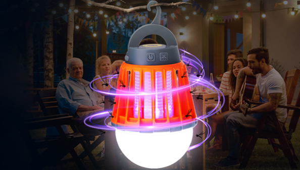 Bug Bulb Mosquito Zapper is a bug zapper that can also serve as a lantern. It features a 4500V 18W high-intensity ultraviolet bulb with a wavelength of 365nm, which lures mosquitoes, gnats, flies, moths, etc., and then eliminates them immediately and efficiently. It is Adopted with physical electrostatic shock instead of chemical aerosol, toxic substances, and insecticides, thus making sure this mosquito killer lamp is safe for both humans and pets. It’s also equipped with a solid safety grid to protect any mistaken touch from children.