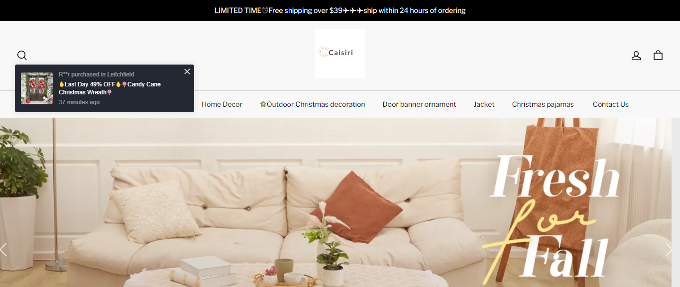 Caisiri located at Caisiri.com is an online store that is selling various products such as Christmas decorations, dresses, tops, etc. And these products are sold at a suspicious discount rate.