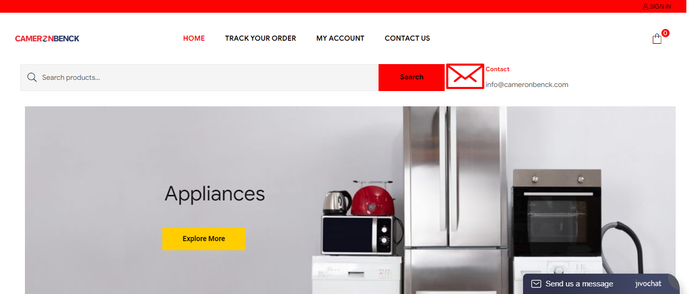 Cameronbenck located at Cameronbenck.com is an online store that is selling various products such as laptops, microwaves, laundry pedestal drawer, vacuum, etc. And these products are sold at a suspicious discount rate.