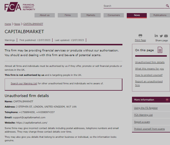 Having said that, it is not far from believing that CapitalBmarket.com is not a licensed brokerage firm. It is not under any financial regulation which means wiring your money for trading is risky. Its unlicensed and unregulated activities are truly a red flag and must be avoided.