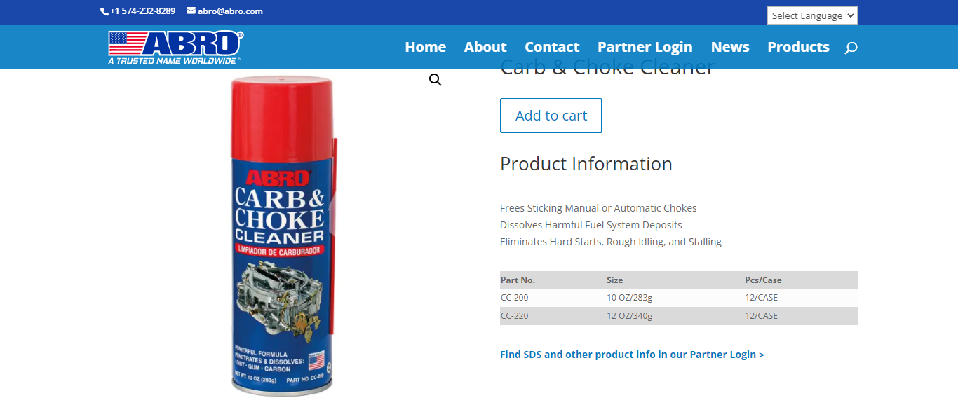 Carb & Choke Cleaner is carburetor cleaner manufactured by ABRO.