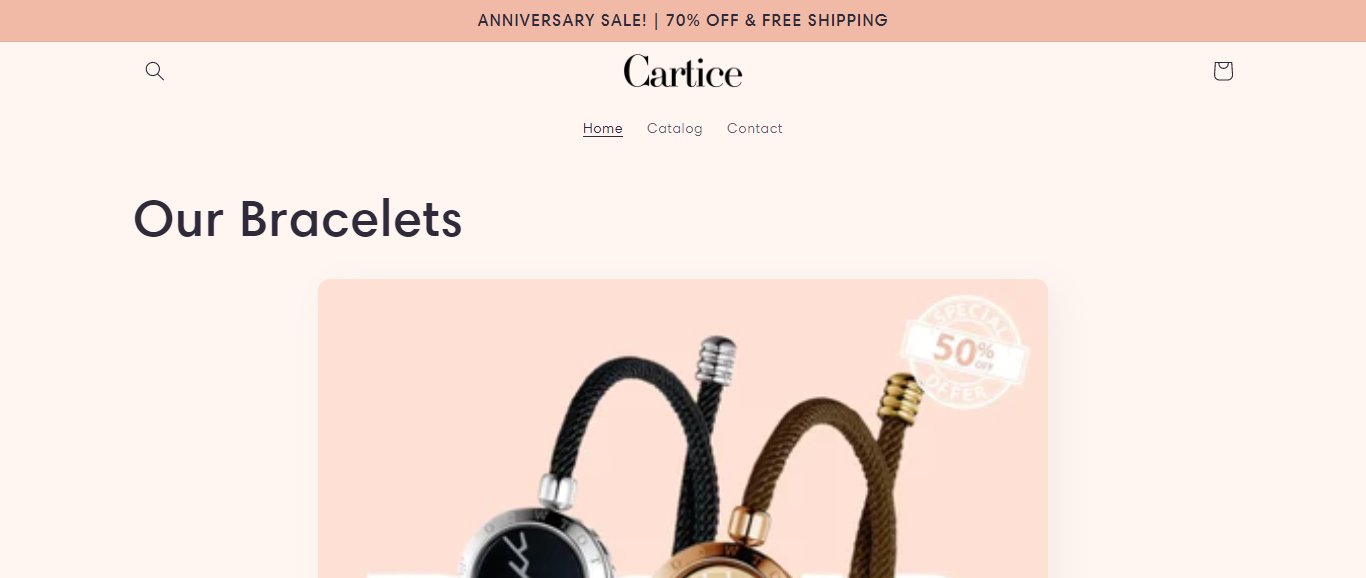 Carticetouch also known as Cartice Touch Store located at Carticetouch.Store is an online store that is selling various products such as Bracelets, etc. And these products are sold at a suspicious discount rate.