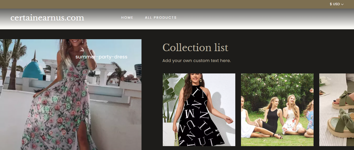 Certainearnus located at Certainearnus.com is an online store that is selling various products such as dress, tops, two piece, etc And these products are sold at a suspicious discount rate.