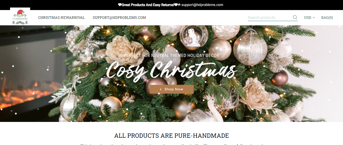Coplandy located at coplandy.com is an online store that is selling various products such as Pre lit artificial Christmas Hanging basket, Pomegranate citrus spice holiday wreaths, Christmas wreaths, hydrangea wreaths, eucalyptus farm house wreaths, pumpkin wreaths, fall bow outdoor wreaths, halloween swag wreath, winter wreath farmhouse wagon wheel, boho wreaths, farmhouse wreaths, etc. And these products are being sold at suspicious discount prices.