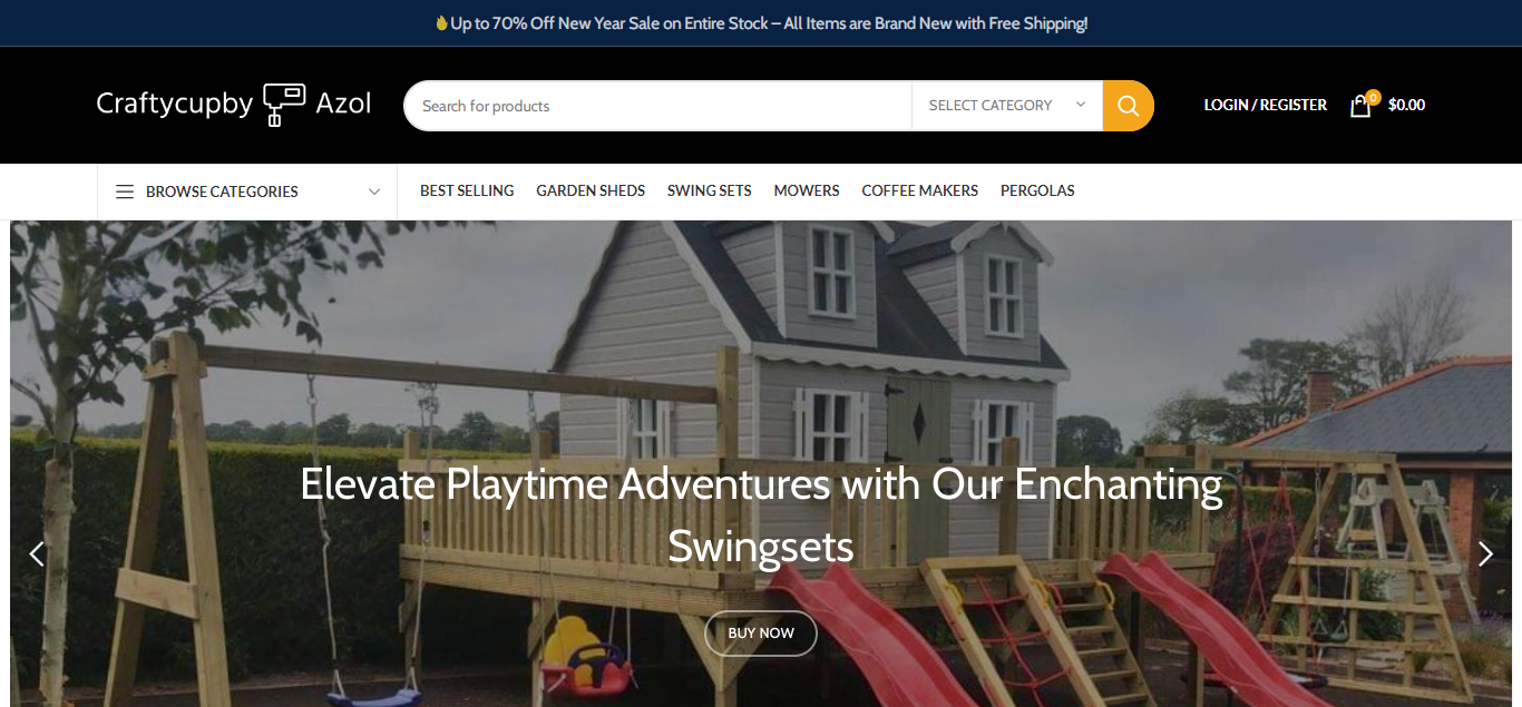 Craftycupbyazol located at Craftycupbyazol.com is an online store that is selling various products such as coffee makers, garden sheds, swing sets, etc. And these products are sold at a suspicious discount rate.