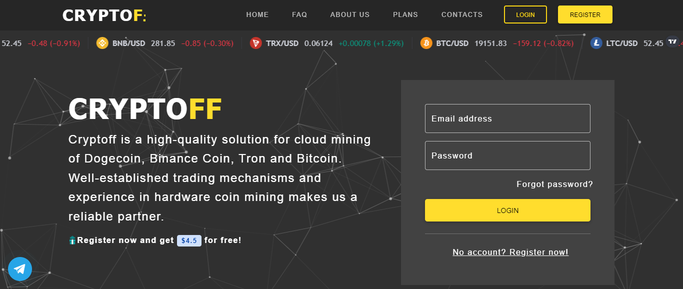 Cryptoff.cc is a scam investment website that claims to trade Crypto and Forex trading. It claims that it was created for people interested in crypto markets but had little knowledge about trading or how cryptocurrency works.
