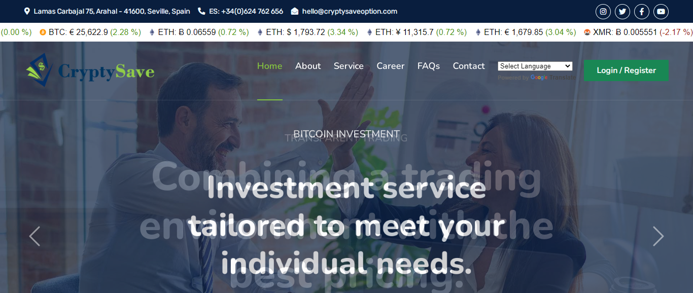 Cryptysaveoption is a cryptocurrency exchange platform that claims to trade Cryptocurrencies, Stock Indices, Commodities and Stock markets from a single account. It also handles various types of investments.