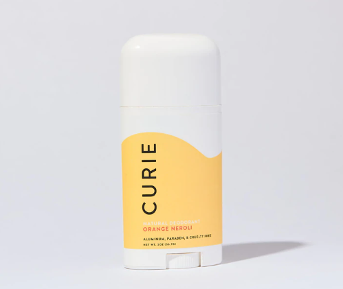 Curie Deodorant is a deodorant that is Made with ingredients like sage oil, triethyl citrate and baking soda — and without aluminum, parabens, or phthalates.