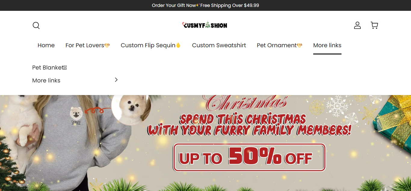 Cusmyfashion located at Cusmyfashion.com is an online store that is selling various products such as sweatshirts, hoodies, pet ornaments, etc. And these products are sold at a suspicious discount rate. The store is also running a sales on Facebook but this is a scam!