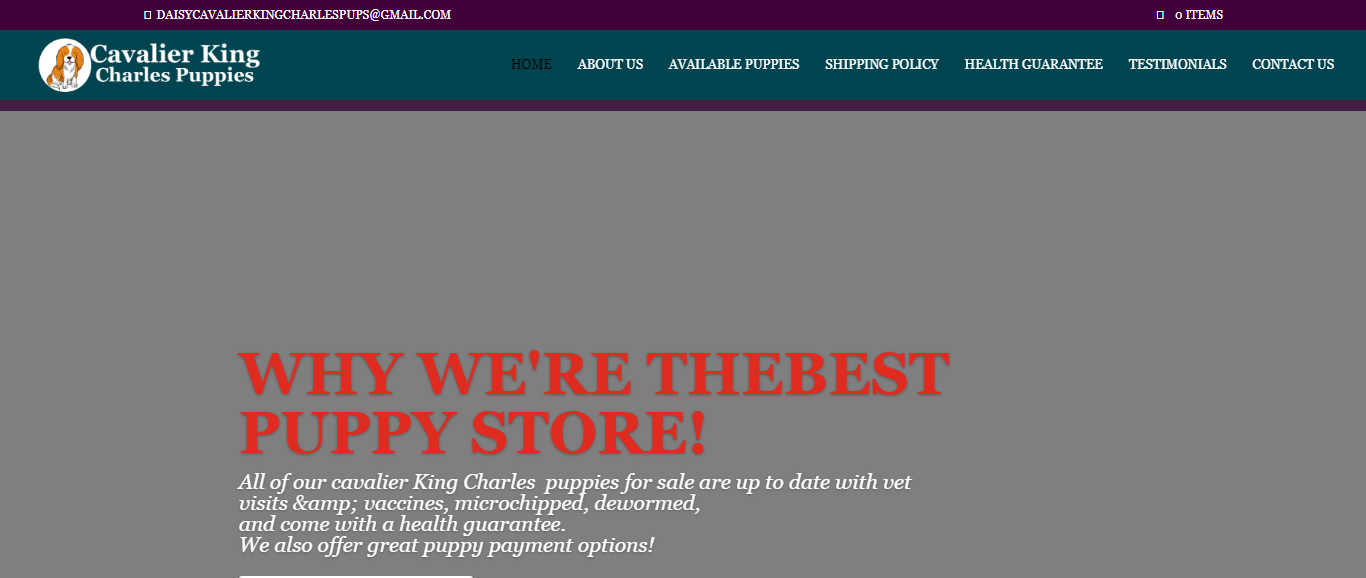 Daisycavalierkingcharlespuppies located at Daisycavalierkingcharlespuppies.com is an online store that is selling various types of puppies, etc And these products are sold at a suspicious discount rate.
