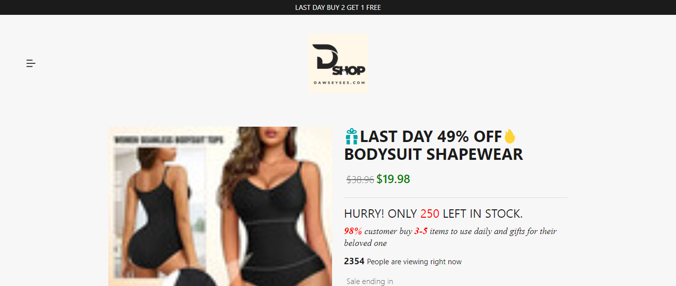 Dawseyses located at Dawseyses.com is an online store that is selling various products such as, bodysuits, shapewear, etc. And these products are sold at a suspicious discount rate.