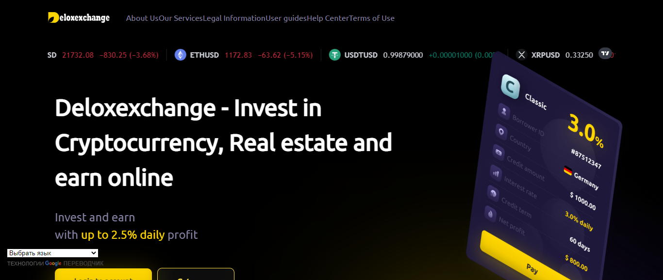 Deloxexchange located at Deloxexchange.com is a scam investment website that claims to trade Crypto and Forex trading. .