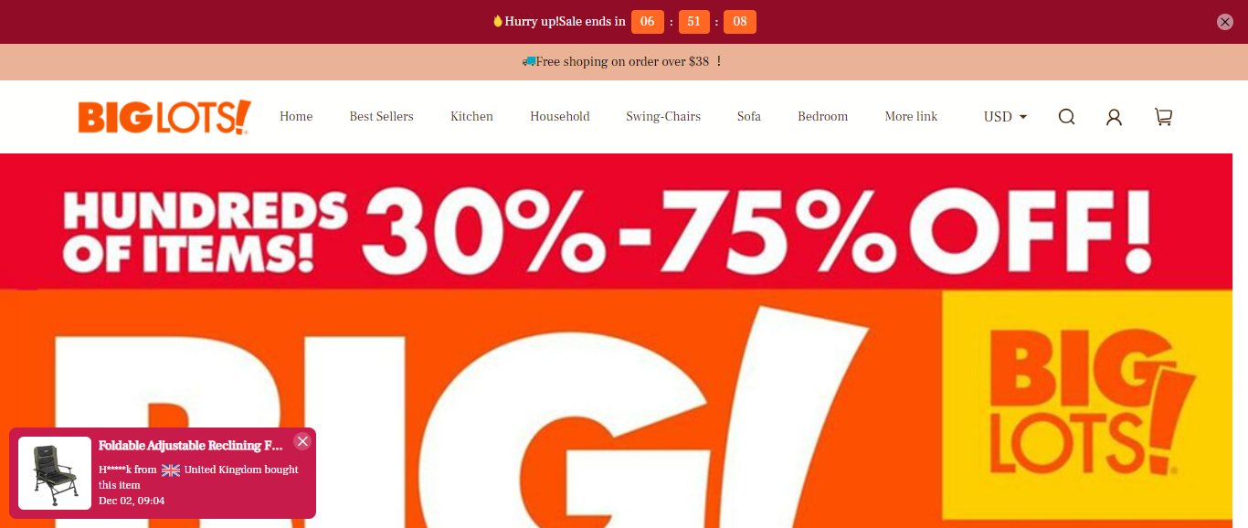 Delphidon located at Delphidon.shop is an online store that is selling various products. And these products are sold at a suspicious discount rate. It is also impersonating the Big Lots brand by using its name and logo on its site with claims of running a Limited Time Sales, but this is a scam!