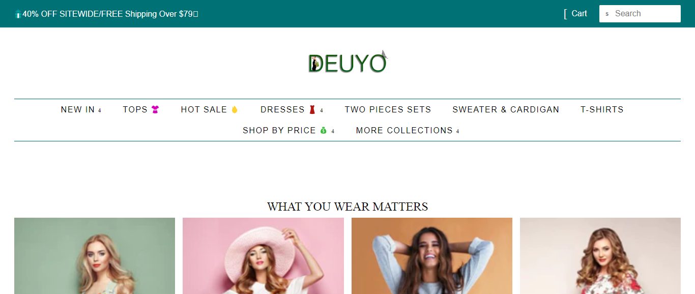 Deuyo located at Deuyo.com is an online store that is selling various fashion and clothing products such as gowns, tops, two piece, sweaters, cardigans, . And these products are sold at a suspicious discount rate.