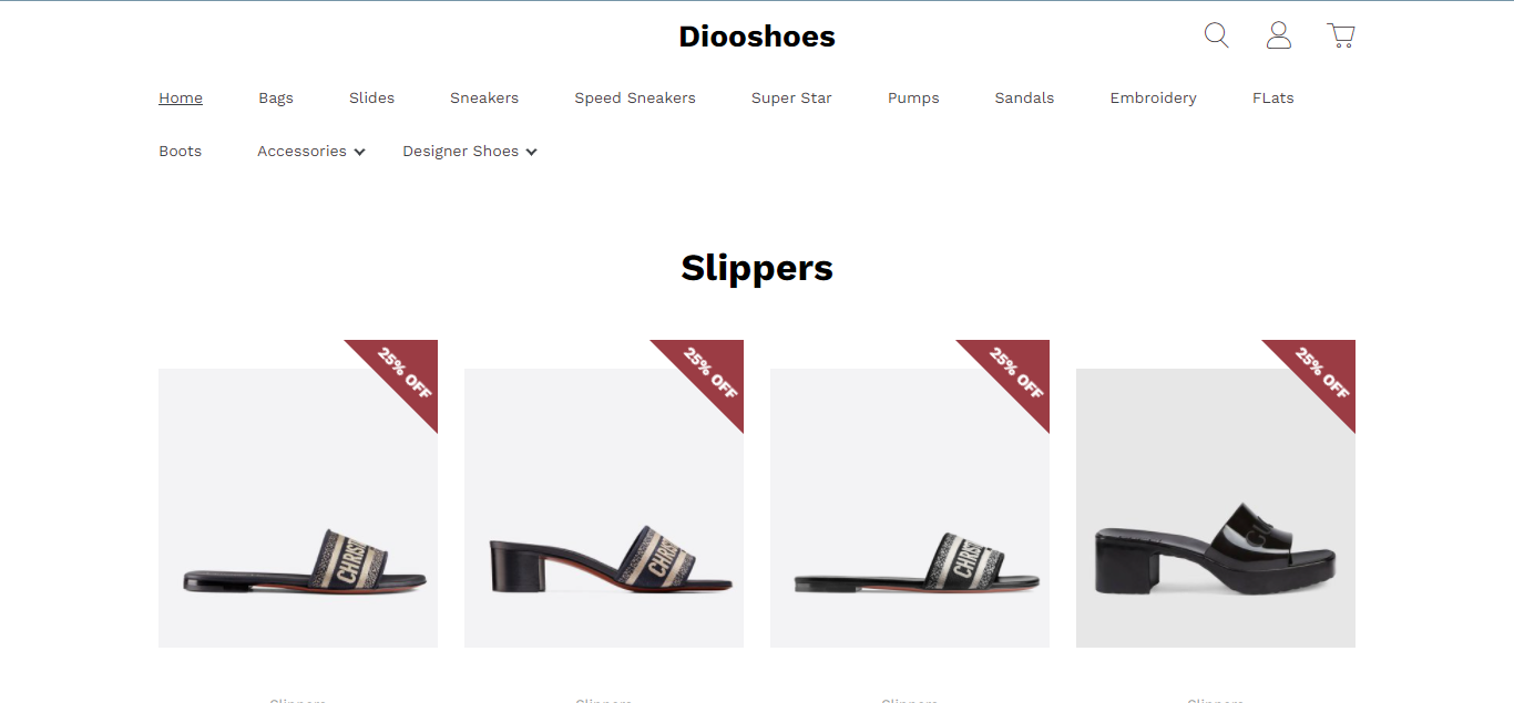 Diooshoes located at Diooshoes.com is an online store that is selling various items like Bags, Slides, Sneakers, Speed Sneakers, Super Star, Pumps, Sandals, Embroidery, FLats, Boots, Accessories, Designer Shoes, , etc. And these items are being sold at suspicious discount rates.