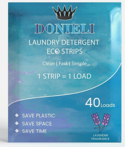 Donieli Laundry Detergent Sheets is an eco friendly laundry cleaning detergent sheet that claims to clean tough stains. The Sheets dissolve within seconds in hot or cold water and work in all machines, HE included.