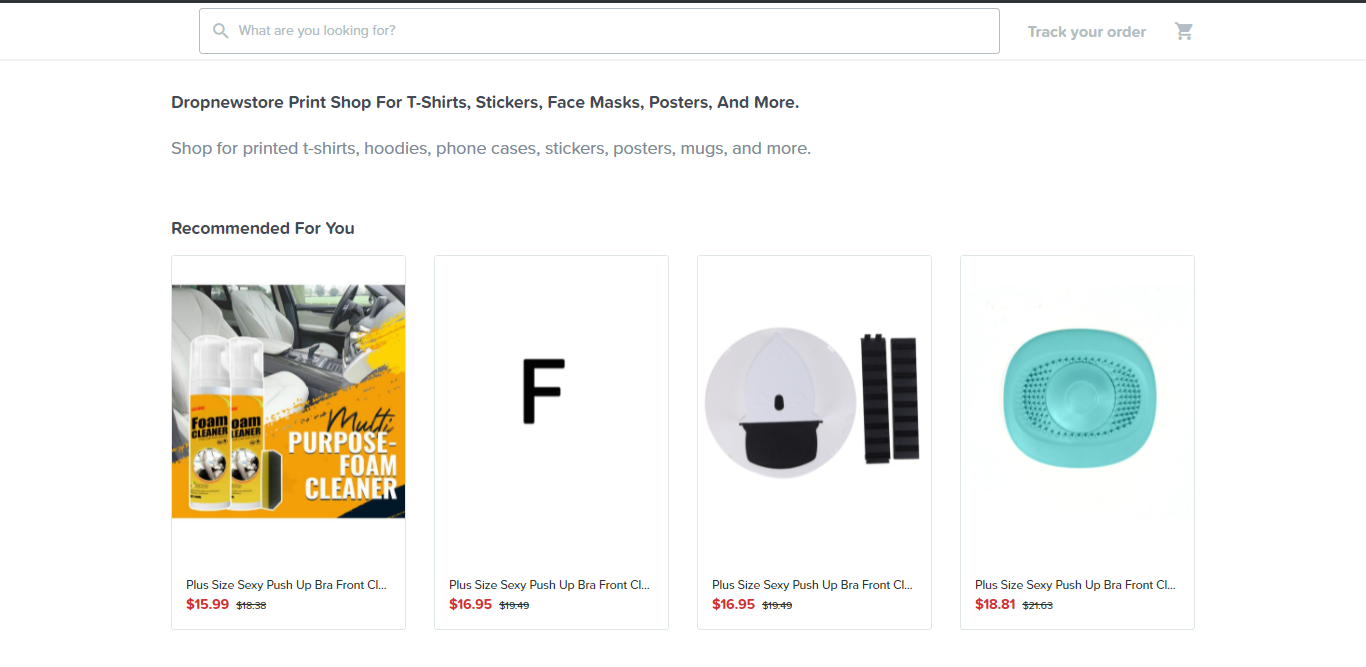 Dropnewstore located at dropnewstore.com is an online store that deals in various products such as printed t-shirts, stickers, hoodies, phone cases, posters, mugs etc . And these products are being sold at suspicious discount prices.