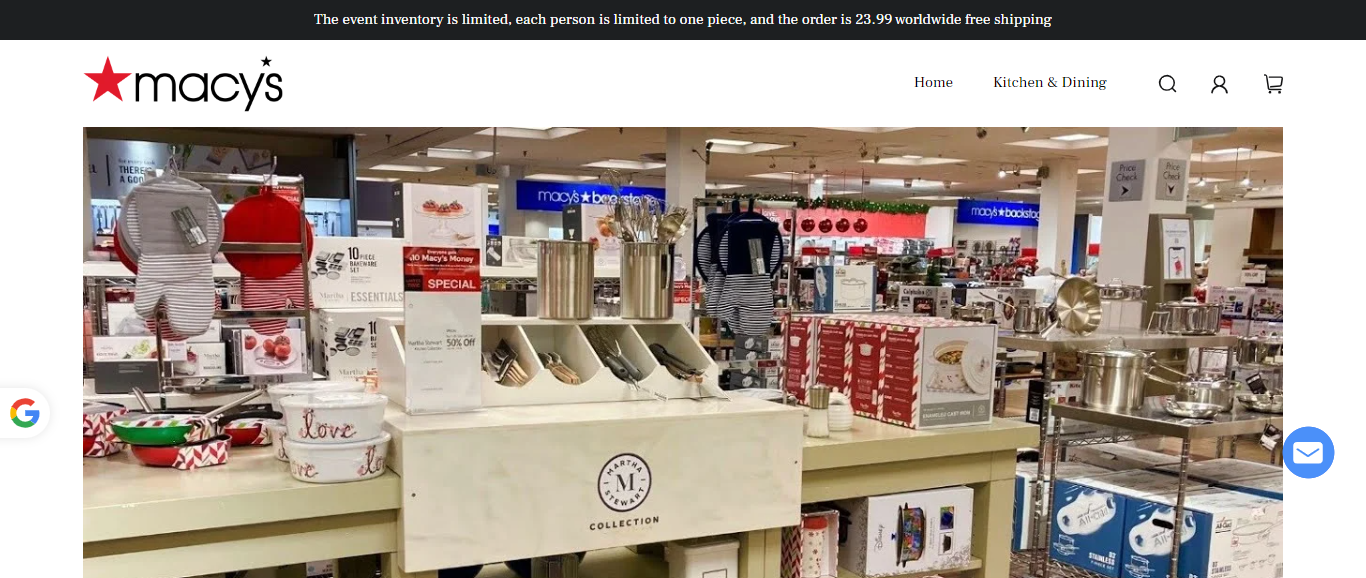 Dvsorp located at Dvsorp.shop is an online store that is impersonating the Macy brand. It claims to be selling various types of cookware and dining set, etc. And these products are sold at a suspicious discount rate.