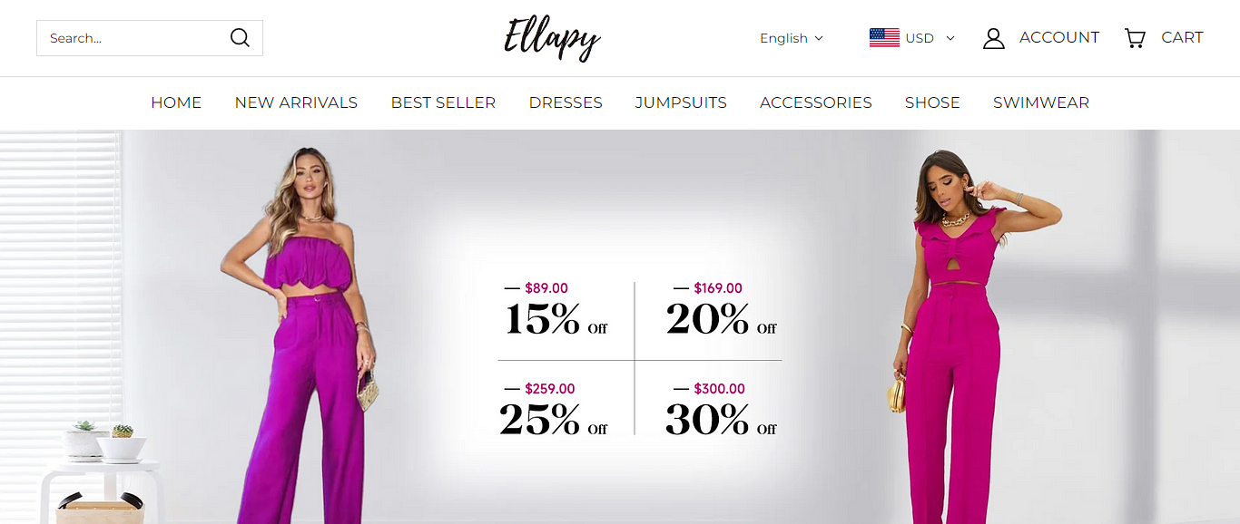 Ellapy located at Ellapy.com is an online store that is selling various products such as two piece set, jumpsuit, dress , etc And these products are sold at a suspicious discount rate.