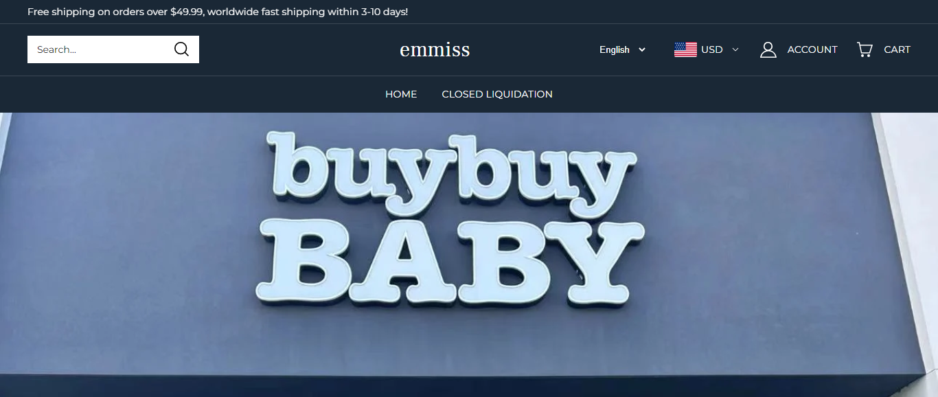 Emmiss located at Emmiss.com is an online store that is impersonating the Buy Buy Baby store by using its brand name and logo as its own. It claims to be running a store closing sale but this is a scam. It claims to be selling various products such as baby strollers, car seats, baby cots, etc. And these products are sold at a suspicious discount rate.